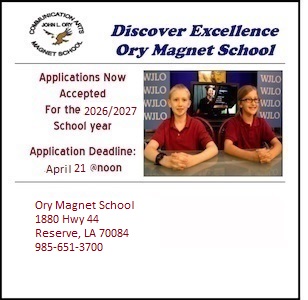 Welcome to the John L. Ory Communication Arts Magnet online applicationThank you for your interest in John L. Ory Communication Arts Magnet School. We believe that our school offers the Kindergarten through 8th grade students of St. John the Baptist Parish a quality education. Our school teaches a curriculum where students learn the basics through the communication skills of reading, writing, speaking, and listening. Only residents of St. John the Baptist Parish are eligible to apply. There is no academic requirement to enter the lottery or for acceptance into the school. More... Register for the 2026/2027 school yearRegistration will begin on February 3rd, 2026 at 9am.